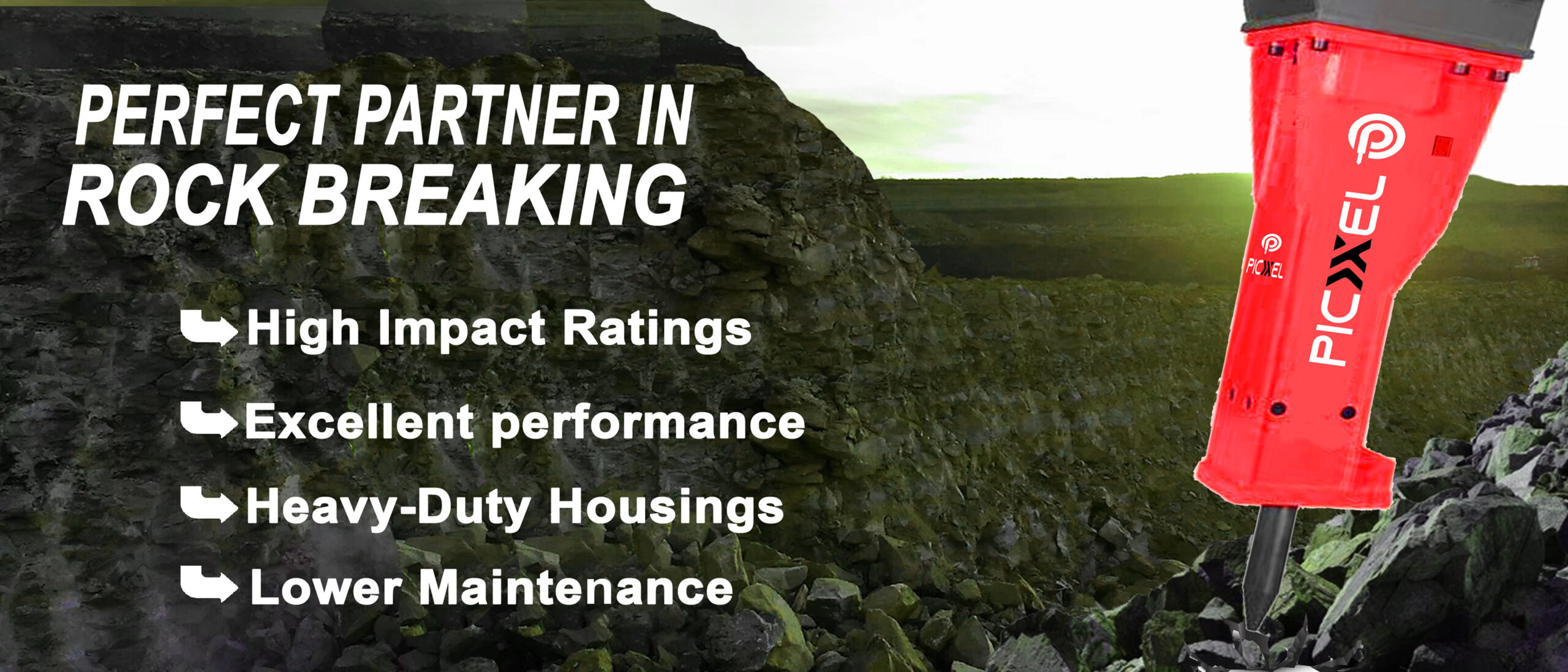 Picxxel’ Heavy duty PRIME SERIES rock breakers are designed to provide efficiencies, minimize machine wear and improve productivity. They are durable, effective for a range of applications, including rock, concrete and slab breaking, road, and sidewalk and curb construction, demolitions, excavations, and more. Picxxel Equipment provides service for their hydraulic breakers and a comprehensive 2-year warranty.